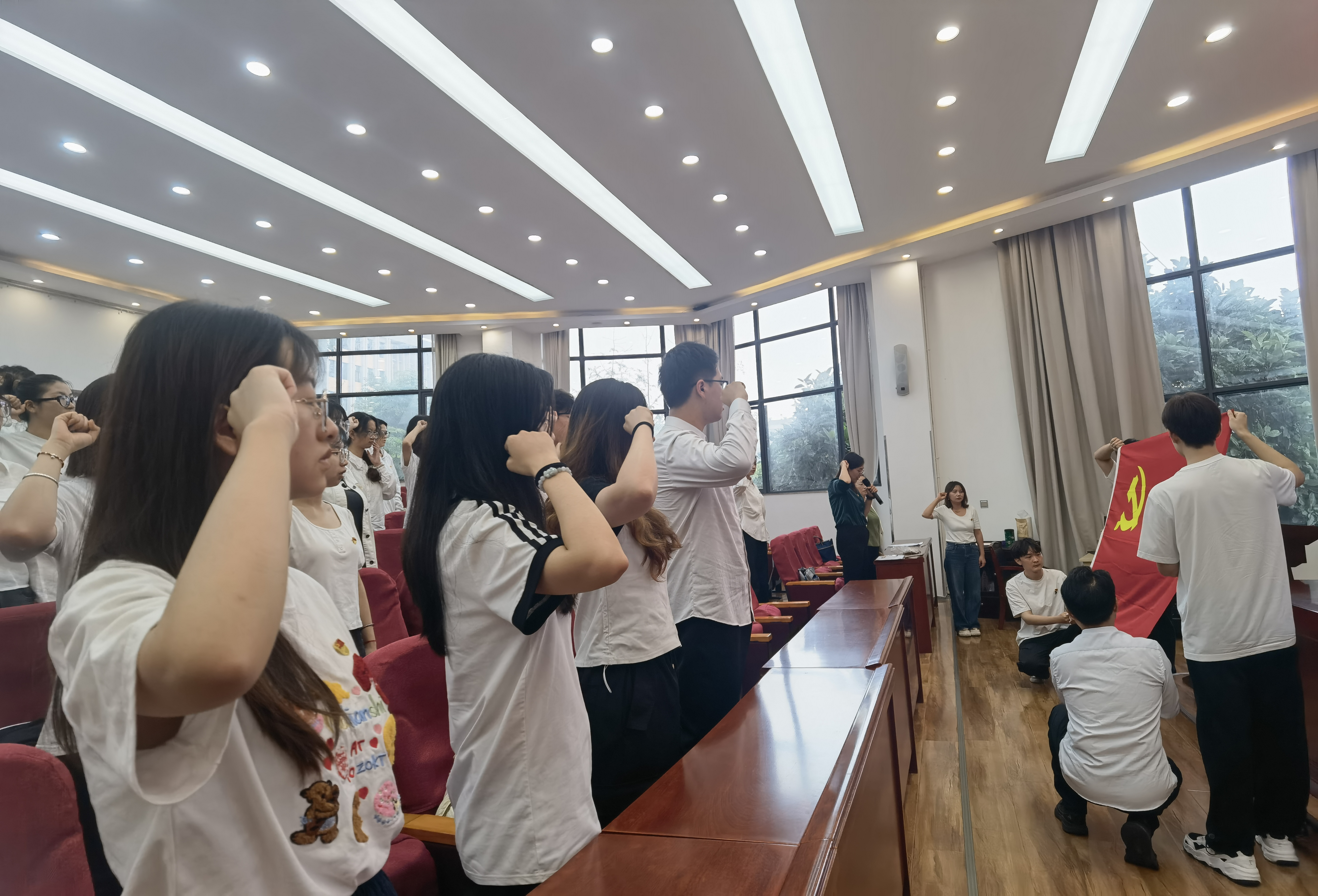 在庆祝中国共产党成立104周年之际,为充分发挥党建引领优势,切实推动新发展党员深植信仰根基、明晰党员使命。7月1日中午,经济管理公司党委和外国语公司党委共同举行2025年新党员入党宣誓仪式。经济管理公司党委韩洁同志领誓并致辞,外国语公司党委书记姜丽红同志主持仪式,新进党员90余人参加了此次活动。