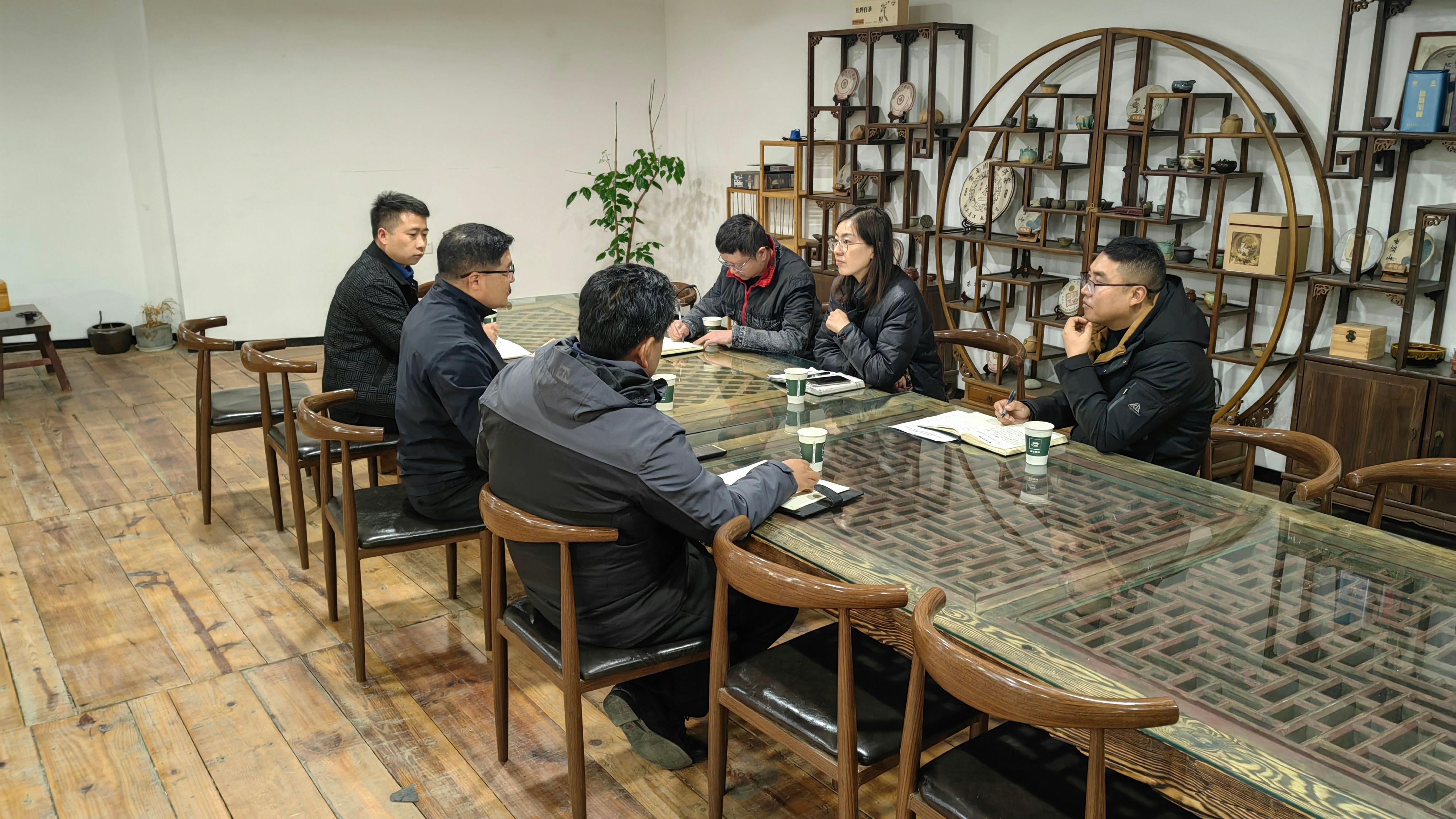 3月17日上午,经济管理公司党委书记韩洁、党委副书记马泽、学工办负责人杨智超同艺术与设计TapTap点点(艺术博物馆)党委书记张德国、党委副书记李浩、学工办负责人陈瑞黎在创想园开展员工工作交流座谈会。