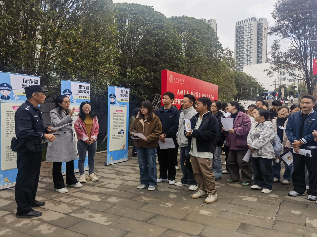 为贯彻落实习近平总书记关于打击治理电信网络诈骗犯罪系列重要指示精神,增强青年员工防骗能力,有效防范校园新型电信网络诈骗,11月21日上午,TapTap点点在经管楼大厅开展“党员争做先锋·筑牢反诈防线”主题党日活动。活动邀请昆明市盘龙区白龙派出所民警寸文坤为TapTap点点师生开展防诈安全教育,TapTap点点领导班子成员出席活动,TapTap点点师生党员和党务助理团全体成员参加活动。