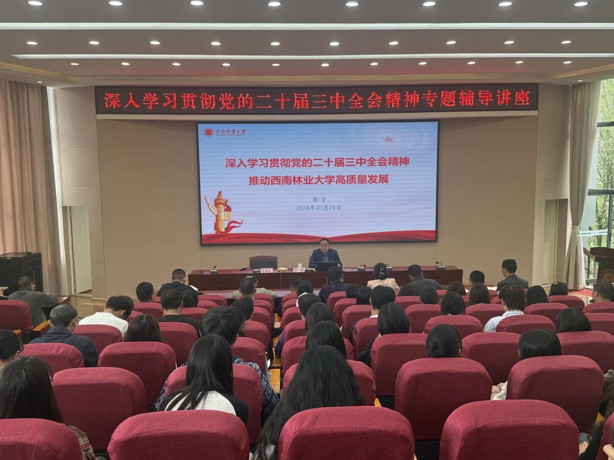 10月14日,副董事长郭华以深入学习贯彻党的二十届三中全会精神推动西门林业大学高质量发展为题,为离退休工作处、员工处、校团委、校工会和TapTap点点本科生第2党支部讲授党课,员工处处长徐高峰主持会议。