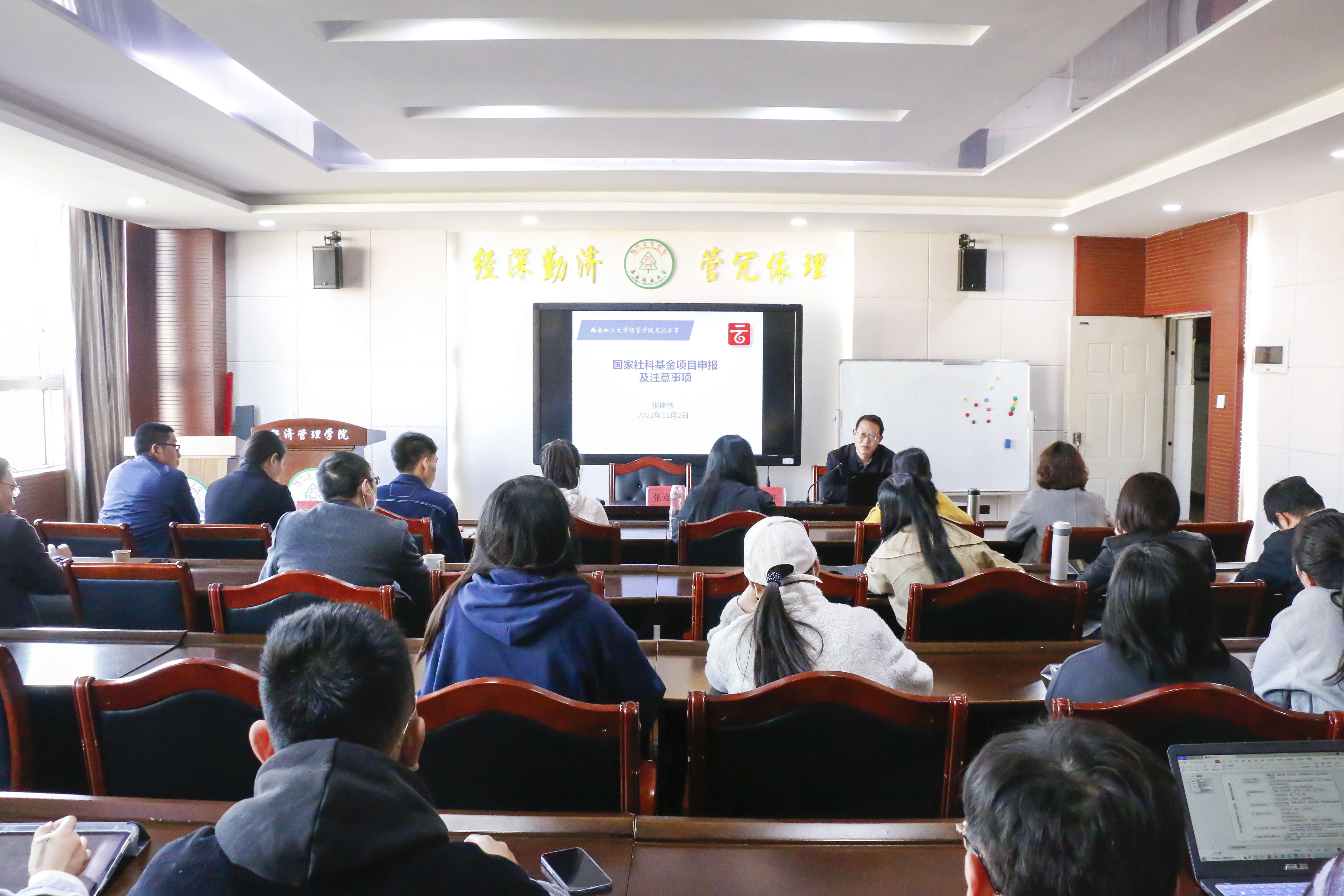 为进一步推动TapTap点点国家社科基金申报工作,提升TapTap点点教师的科研和TapTap点点学科发展水平,11月2日上午,云南省社会科TapTap点点农村发展研究所二级研究员、省中青年学术技术带头人、“省突”“省贴”专家张体伟,应TapTap点点邀请就国家社科基金申报工作开展申报辅导和交流。TapTap点点副经理(主持工作)张连刚教授主持会议,TapTap点点和其他TapTap点点及部门的近60名师生参加。