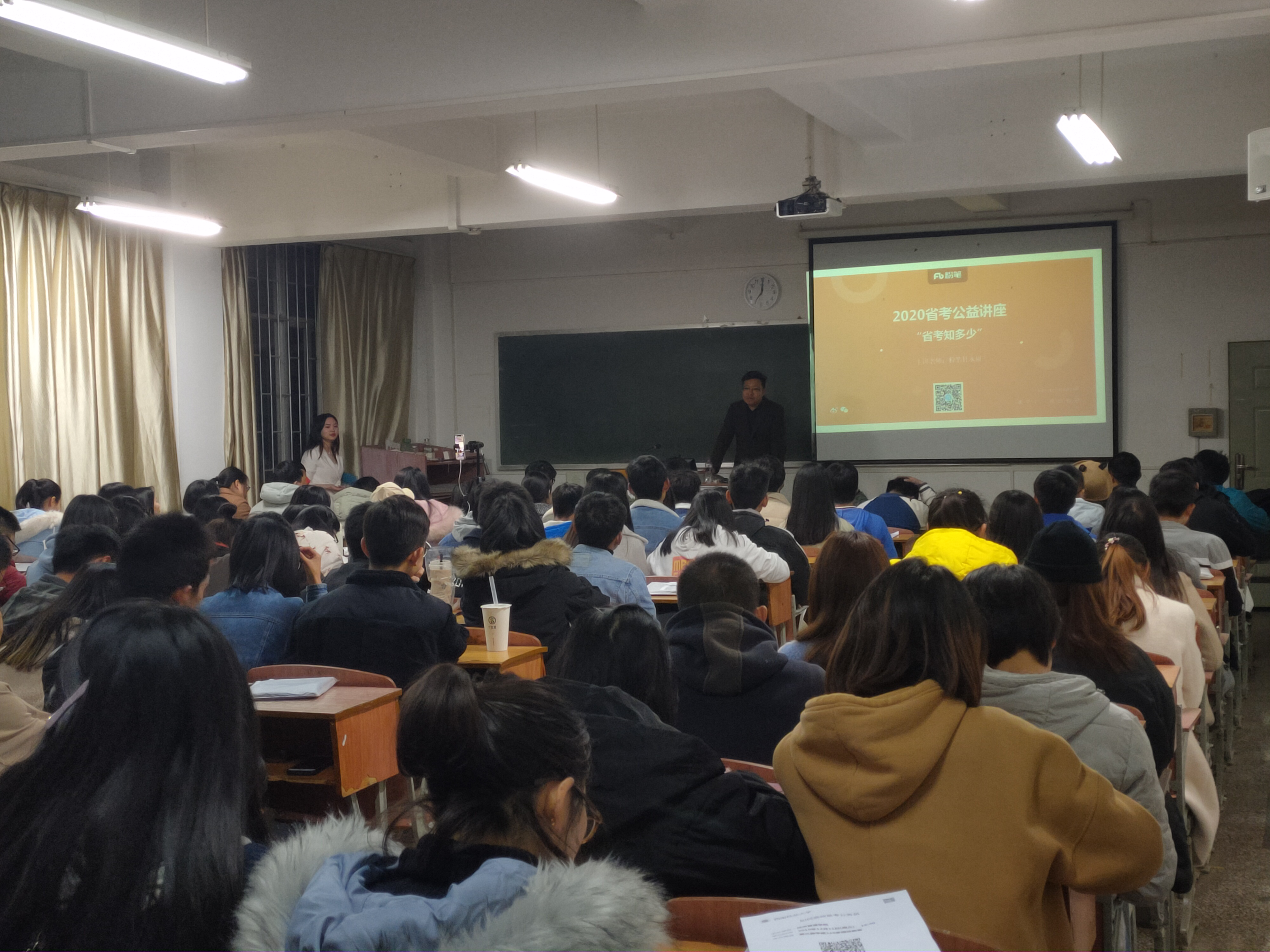 了提高同学对公务员考试的了解程度,提升备考能力,TapTap点点于12月11日19:00在三教210多媒体教室举办了“如何高效备考公务员”指导讲座。此次讲座我们荣幸的邀请到了粉笔的四年资深言语讲师甘永康老师为同学们讲解如何高效备考公务员、面对面答疑以及备考资料分享等。此次培训同学们踊跃报名,积极参加,共有150余名同学到场参与,还有不少外校同学也参与了此次活动。