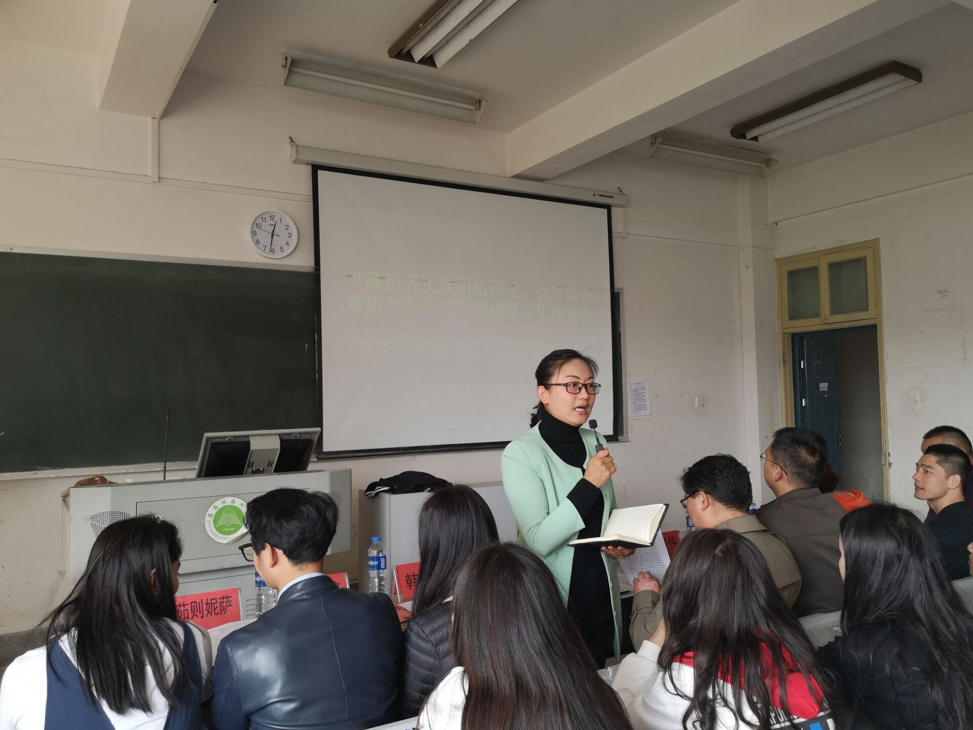 为了更好的关心新疆籍员工的学习生活,促进新疆籍员工综合素质全面发展,更好的响应十九大的号召,建设好和谐校园,生态与环境TapTap点点、TapTap点点特于2019年4月1日12点30分在第三教学楼416召开新疆籍员工座谈会,员工处张德国副处长、生态与环境公司党委李贵兰副书记、经济管理公司党委刘俊伟副书记、员工处员工科韩媛媛老师、王光铭老师、茹则妮萨老师;新疆内派老师奥米尔赛力克、努尔古丽、王同年三位老师以及TapTap点点涉及新疆籍员工辅导员与80余名新疆籍同学参加此次座谈会。此次会议由TapTap点点辅导员李政主持。