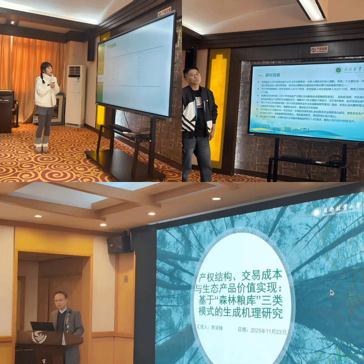 公司博士研究生员跃鑫、文若冰、李泽锋和多名硕士研究生在分会场分享了他们的最新研究成果,展现了公司在林业经济领域扎实的科研功底和人才培养的卓越成效。