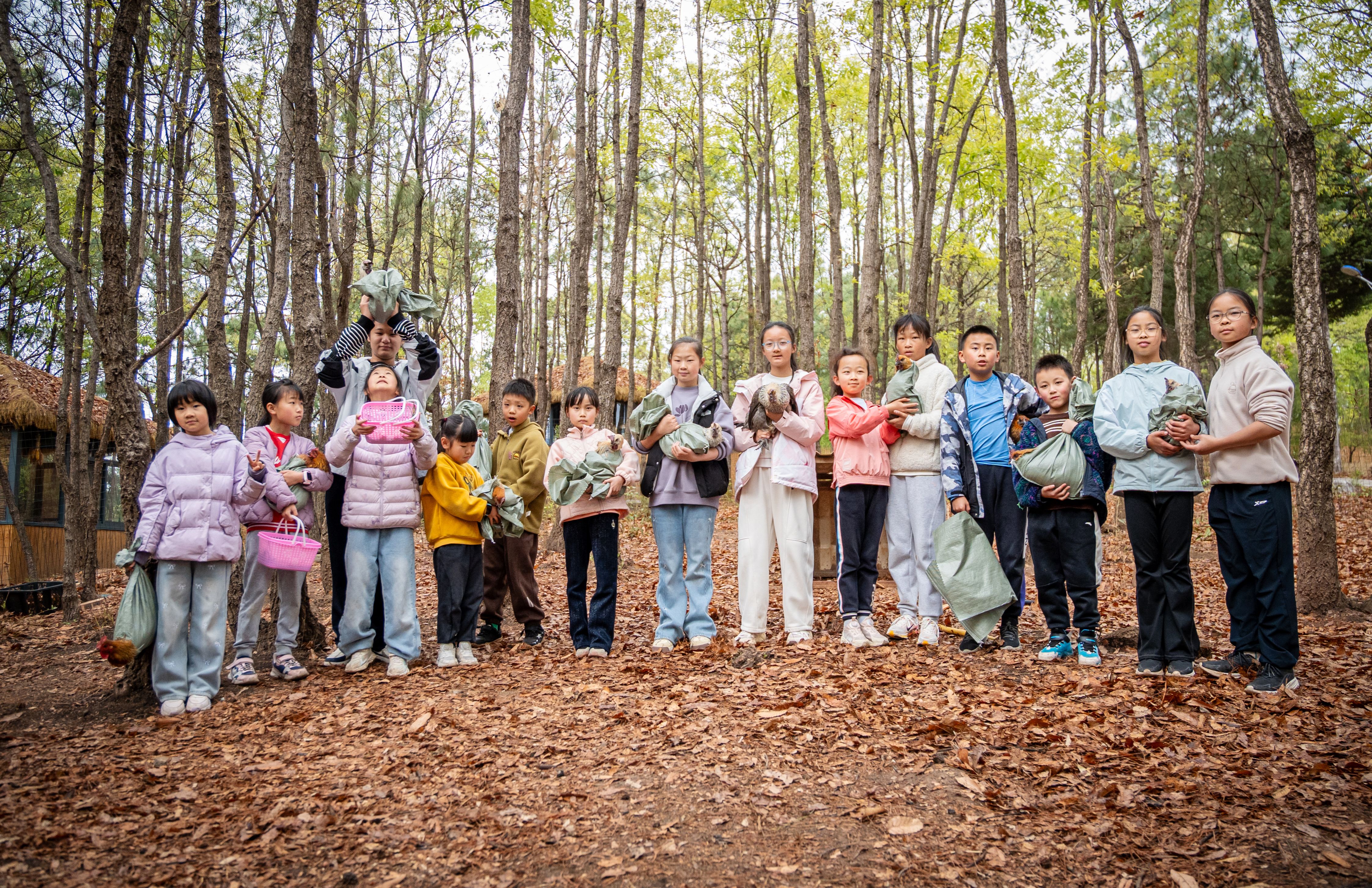 随后的趣味活动将现场气氛推向高潮。在趣味“抓鸡比赛”中,家长与孩子们默契配合,你追我赶,欢笑声、加油声此起彼伏;一旁的“丛林捡鸡蛋”则成了“寻宝乐园”,他们穿梭在林间草丛,仔细搜寻每一处角落,每发现一枚鸡蛋都如获至宝。家长们或引导鼓励,或俯身协助,亲子温情在悄然流淌。