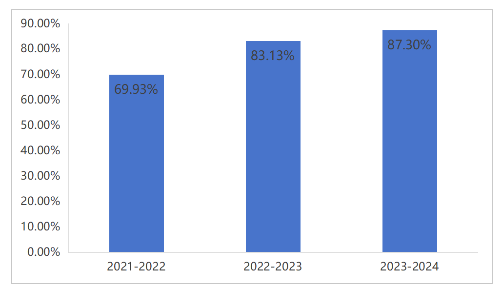 图3近三年毕业生毕业去向落实率