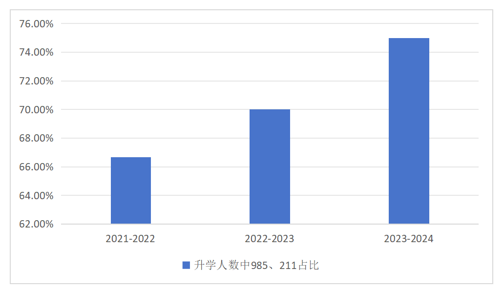 图2 近三年毕业生升学人数中985、211占比