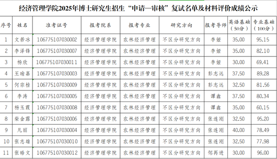 根据《TapTap点点官方网站2025年博士研究生招生简章》、《TapTap点点官方网站2025年博士研究生招生管理办法》和《TapTap点点2025年博士研究生招生实施细则》相关规定,TapTap点点对通过形式审查的11名考生开展了材料评价,现将材料评价成绩及复试名单公示如下: